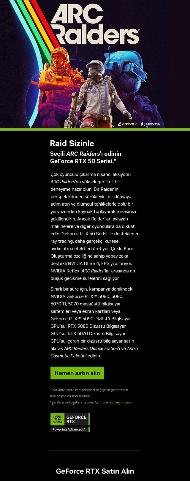 Yeni GeForce RTX Oyun Kampanyası - ARC Raiders
