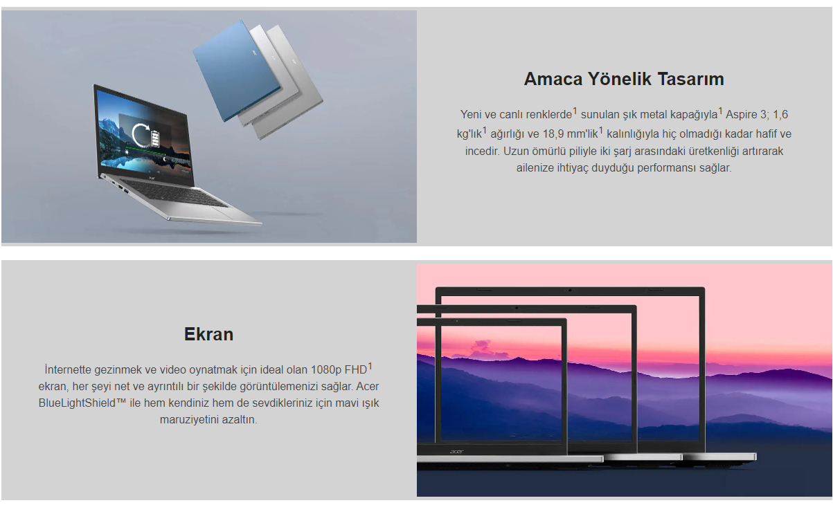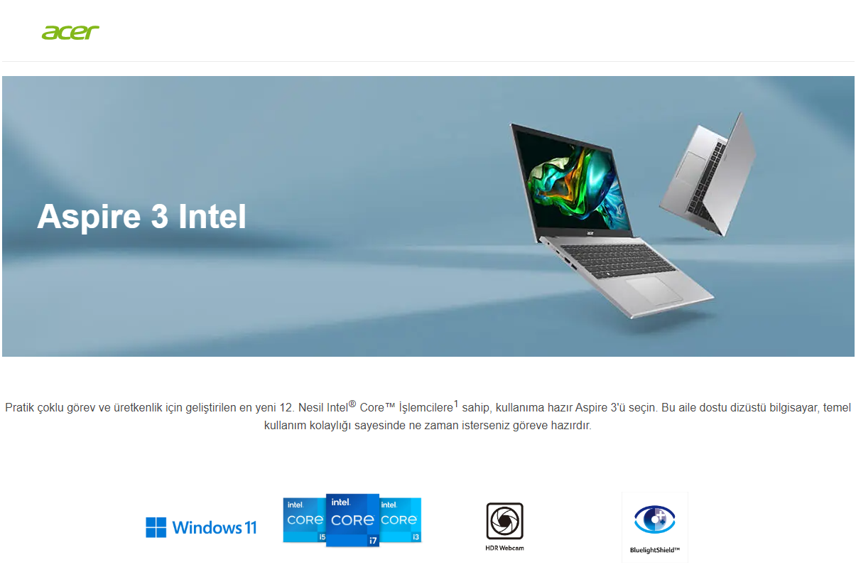 ACER ASPIRE 3 A315-59-59AY INTEL I5-12350U İŞLEMCİ 8GB RAM 512SSD UMA 15,6''FHD EKRAN W11HOME GÜMÜŞ DİZÜSTÜ PC