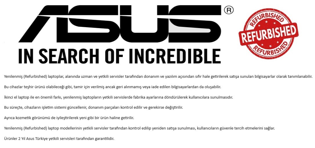 ASUS X515EA-BQ867 İ5-1135G7 8GB 256GB SSD IRİS XE GRAPHİCS 15.6" FHD FDOS REFURBISHED