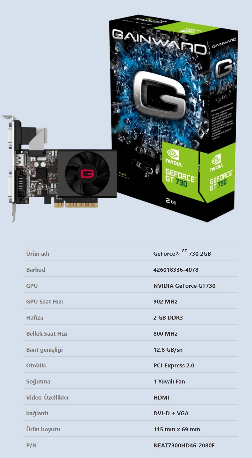 GAİNWARD NVIDIA GT730 2GB DDR3 NEAT7300HD46-208OF